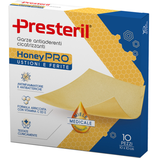 GARZA ANTIADERENTE CICATRIZZANTE PRESTERIL HONEYPRO 10X10 CM 10 PEZZI
